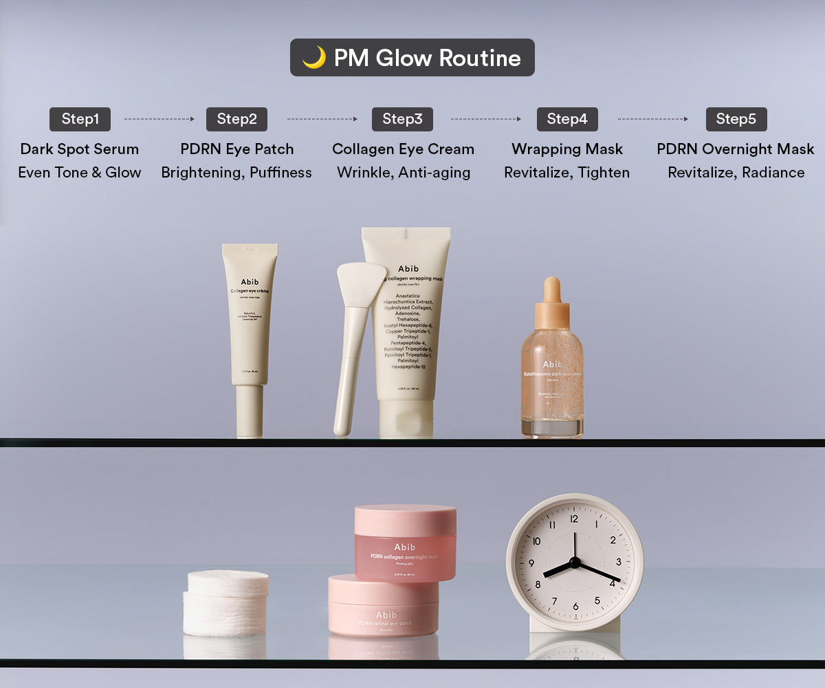 Unwind with a 5-minute night routine—brighten with a dark spot serum, smooth fine lines with Jericho Eye Cream, and refresh tired eyes with PDRN Eye Patches. Finish with the PDRN Overnight Mask to restore and wake up with glowing skin.