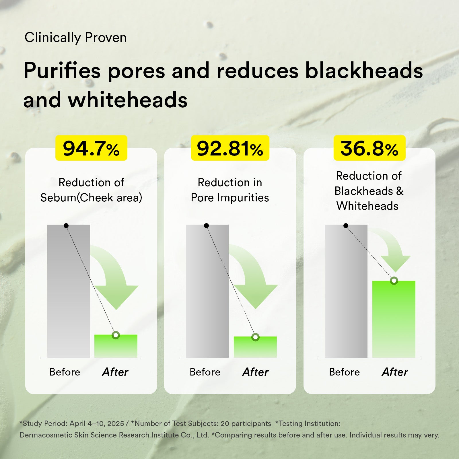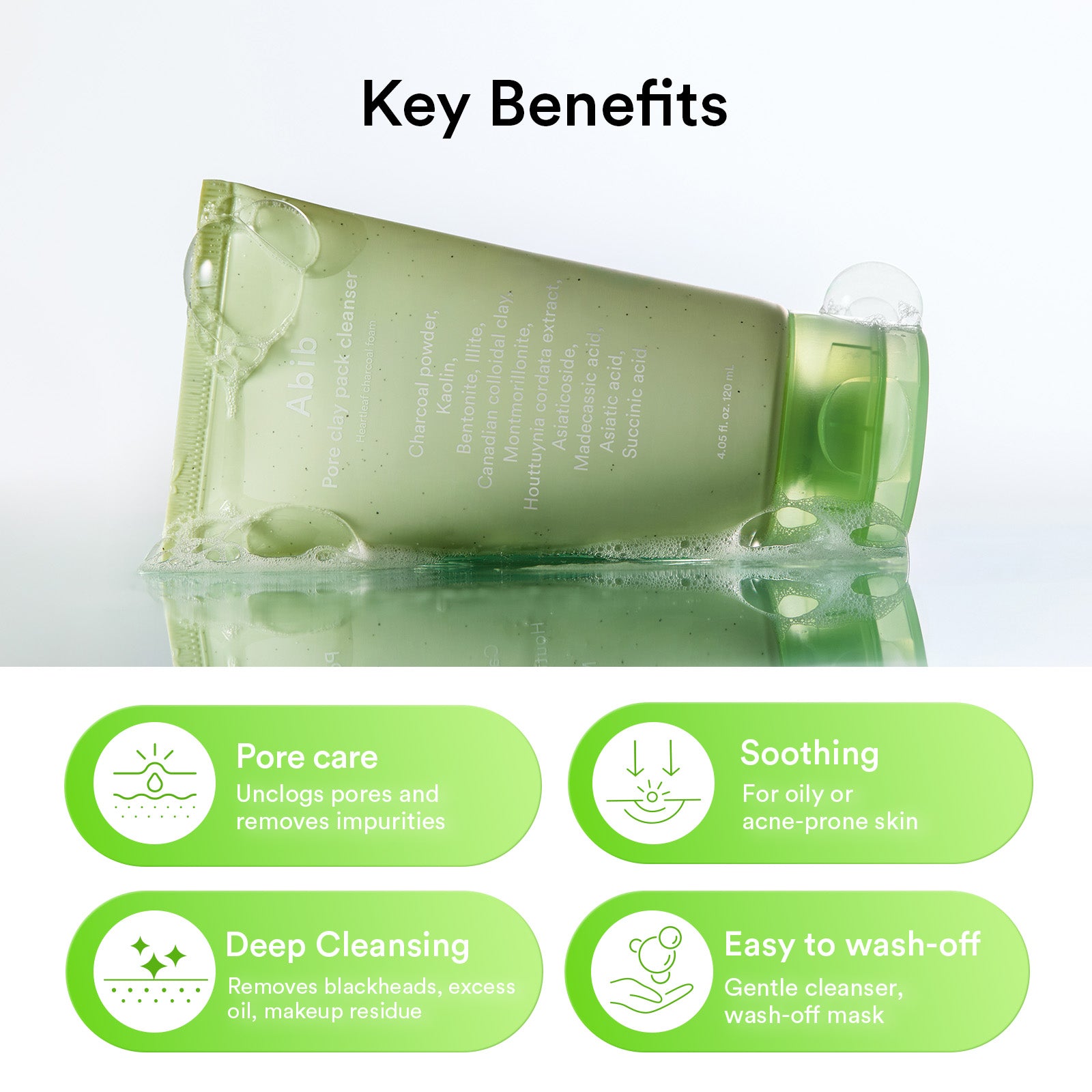 Pore clay pack cleanser Heartleaf charcoal foam: Water, Glycerin, Kaolin, Bentonite, Myristic Acid, Methylpropanediol, 1,2-Hexanediol, Zea Mays (Corn) Starch, Titanium Dioxide, Potassium Hydroxide, Butylene Glycol, Glyceryl Stearate, Cellulose, Sodium Cocoyl Glycinate, Charcoal Powder, Palmitic Acid, Stearic Acid, Magnesium Aluminum Silicate, Houttuynia Cordata Extract, Xanthan Gum, Hydroxyacetophenone, Houttuynia Cordata Powder, Ethylhexylglycerin, Dipropylene Glycol, Chromium Oxide Greens, Agar, Sodium Phytate, Laminaria Japonica Extract, Eclipta Prostrata Leaf Extract, Chondrus Crispus Extract, Fructooligosaccharides, Beta-Glucan, Hydrogenated Lecithin, Hydrolyzed Hyaluronic Acid, Allantoin, 4-Terpineol, Succinic Acid, Canadian Colloidal Clay, Illite, Asiaticoside, Madecassic Acid, Asiatic Acid, Montmorillonite, Sodium Hyaluronate, Hyaluronic Acid, Diospyros Kaki Leaf Extract, Vitis Vinifera (Grape) Fruit Extract, Carthamus Tinctorius (Safflower) Flower Extract, Polygonum Cuspidatum Root Extract, Coffea Arabica (Coffee) Seed Extract, Camellia Sinensis Leaf Extract, Castanea Crenata (Chestnut) Shell Extract, Zanthoxylum Piperitum Fruit Extract, Sodium Hyaluronate Crosspolymer, Hydroxypropyltrimonium Hyaluronate, Sodium Acetylated Hyaluronate